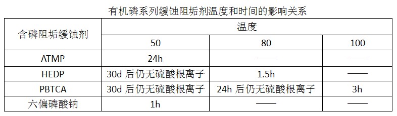 從表中可以看出,含磷阻垢緩蝕劑的熱穩定性能次序為: