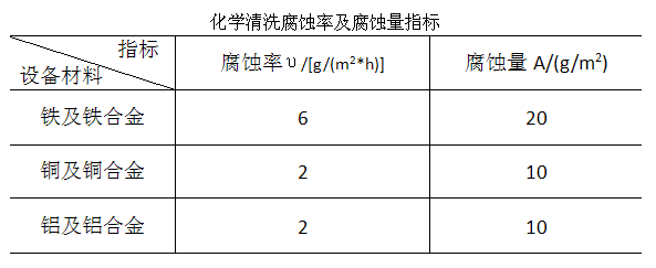 化學(xué)清洗時金屬腐蝕率和腐蝕量應(yīng)不大于下表指標。