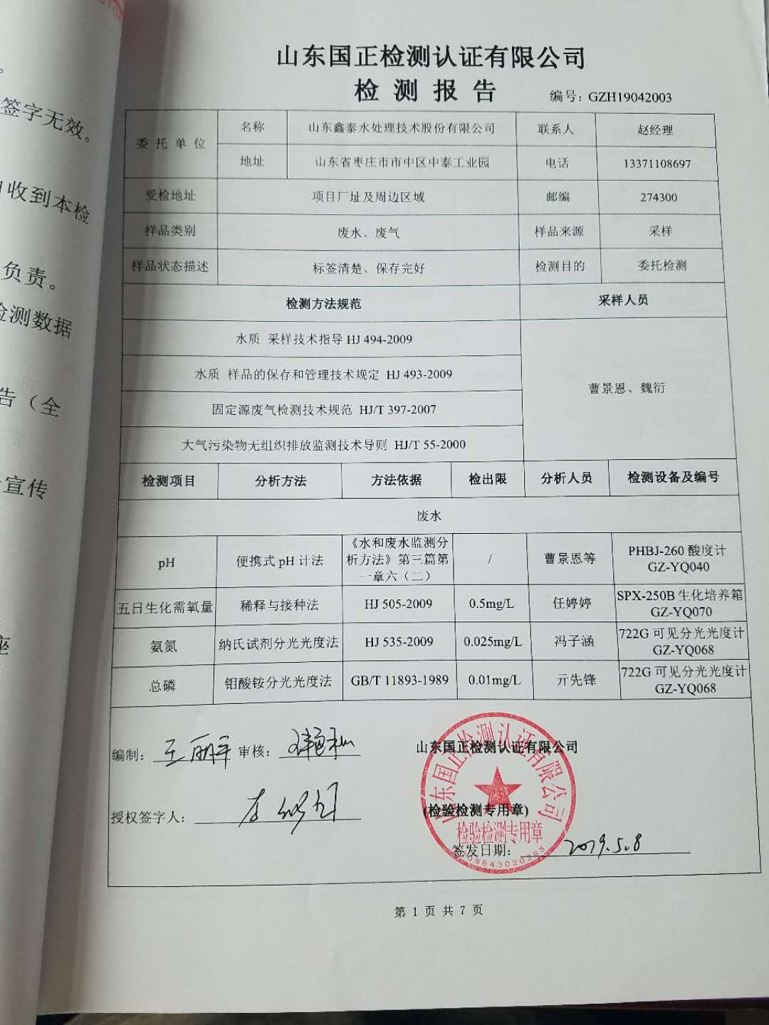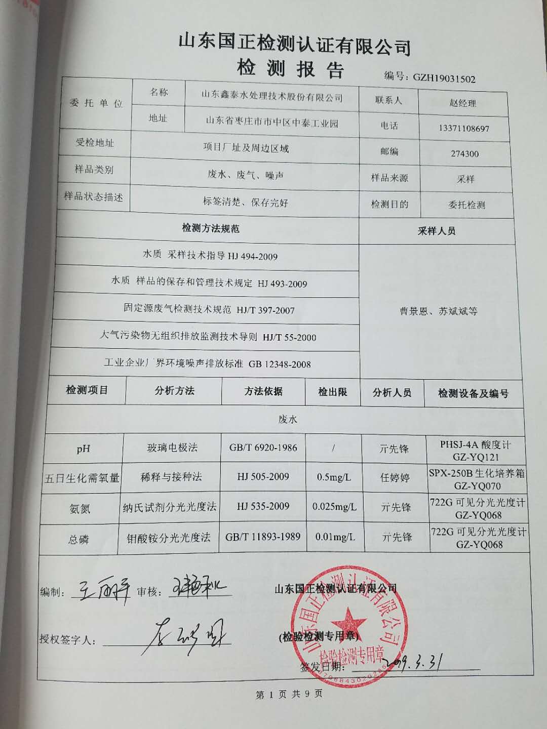 | 主要內(nèi)容 | 與山東國正檢測(cè)認(rèn)證有限公司簽訂環(huán)境檢測(cè)協(xié)議,委托第三方機(jī)構(gòu)對(duì)我公司進(jìn)行環(huán)境檢測(cè),檢測(cè)頻次、地點(diǎn)及項(xiàng)目等與環(huán)評(píng)報(bào)告要求一致。 |