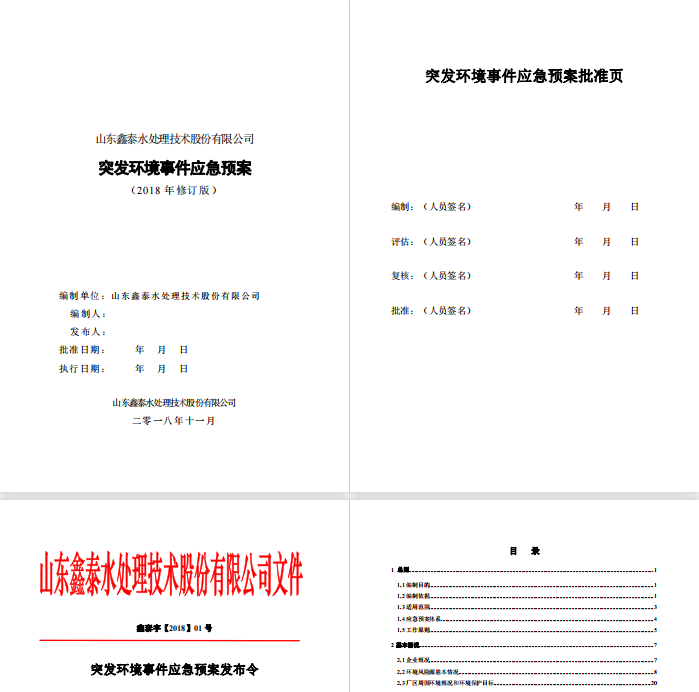 山東鑫泰水處理技術股份有限公司 突發環境事件應急預案