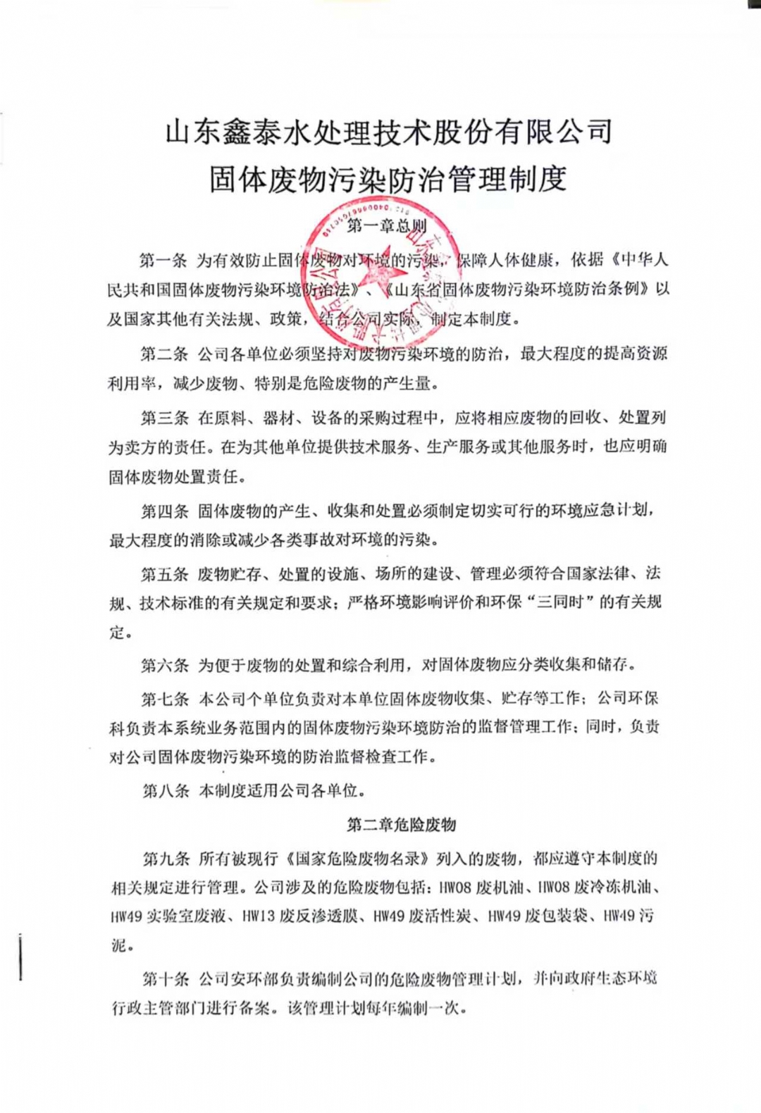 山東鑫泰水處理技術(shù)股份有限公司“無廢工廠”建設(shè)工作實施方案